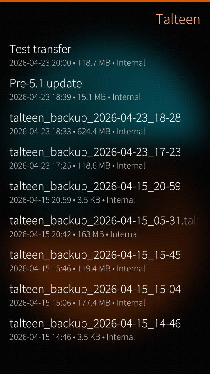 Talteen is your all-in-one backup companion for Sailfish OS. Whether you are switching devices or just playing it safe, Talteen bundles your most important data into a single, secure archive. Easily back up your messages, call history, photos, media, and even your app settings. Everything is locked behind strong encryption, giving you total peace of mind that your personal data stays yours.