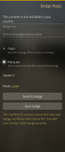 SailfishOS port of FOSSASIA's Badge Magic app for writing text to their LED badges that you get at FOSDEM and other open source parties. Write your text/statement/insult, choose animations and decorations, and write it to a badge in bluetooth listening mode. Save your favourites for later. Send multiple badges and cycle through them with the other button.