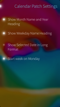 This patch will add "Patch Settings" option to pull down menu of the Calendar app.
