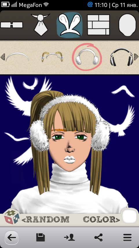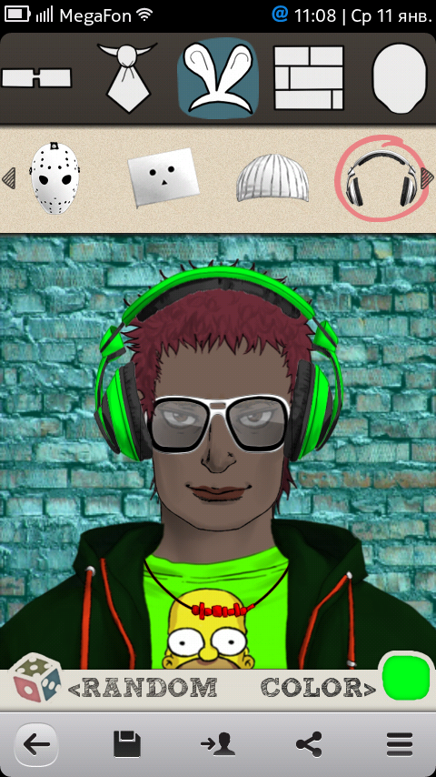 Just swipe to change an item, quickly change color or even generate random avatar. Created avatars can be saved to pictures gallery, assigned to contact and shared online.