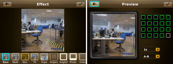 Run MMMOOO Gif, and press the camera icon, the app will take pictures automatically (default to take 20 pictures). Press the tick icon to preview the gif.
