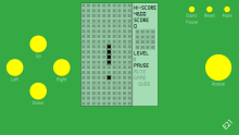 The wording "Hi-Score" hangs out of the background area, which is not shown in your screenshots. My font size is set to "Normal" in Settings/Display. Perhaps to set the size of the hi-score text to "font.pixelSize: Theme.fontSizExtraSmall" so it stays inside the background box?, other than that, I like it, a nice reminder of the early days of owning a Nokia 6210e, thanks.