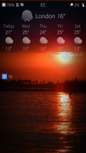 This is a widget for the lockscreen to show weather information. There are three available widgets: the normal eventsview one where you touch to expand: an always collapsed one; and, an always expanded one. It requires my lockscreen widget manager. It shows the same information as the eventview, if you have meecast events view that will be shown.