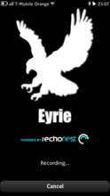 Find out what music is playing. Simply hold your phone up and record whatever music you currently hear and Eyrie will try to work out what song it is and who it's by.