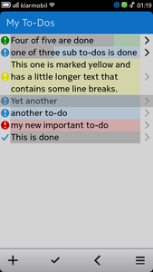 Q To-Do is a simple to-do list organizer. Q To-Do allows to maintain nested to-do's and additional notes. You can indicate the importance of a to-do via four colors and mark to-do's as done. Q To-Do is a Qt/QML port of To-Do-O.