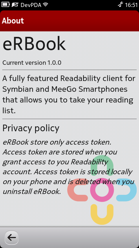 eRBook is fully-featured Readability client for Symbian and MeeGo smartphones.