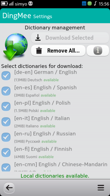 Since NOKIA does not longer support Harmattan, I've made DingMee and all dictionaries free available. If you like it, feel free to donate: