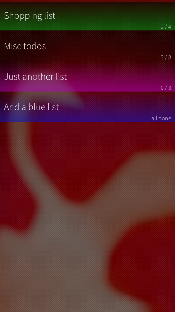 A small and simple todo list app für shopping lists, task lists,... with colored lists and task descriptions.