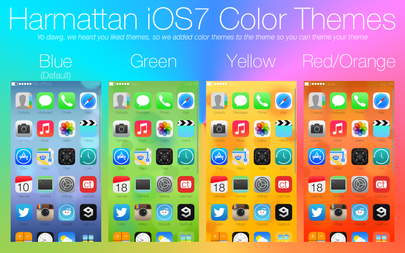 I really like iOS7’s design. So I made a harmattan theme. Hopefully this will be the most full iOS7 theme out. Have a [reasonable] suggestion of something that should be added? Tell me :) Color themes are available on the forum page.