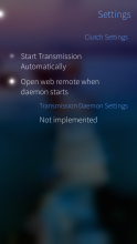 Clutch starts transmission-daemon when the app is opened, and displays the web UI where you can upload .torrent files and monitor the progress of your torrents. The transmission process is automatically killed when the app closes.