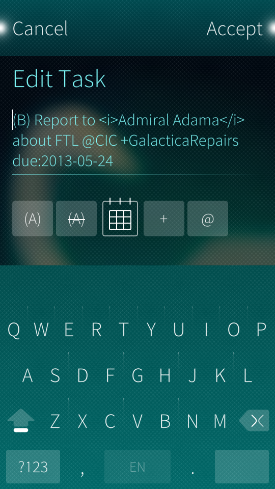 Great app! It seems to be the only Sailfish todo app able to sync, which is important to me. There's one thing I'm missing, though, and that would be due dates and reminders. Is there a chance of you adding this? There's already an issue for this on github, I noticed. I'd be able to ditch Android OpenTasks and go native Sailfish if this was implemented ☺