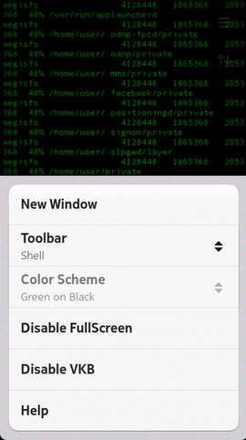 BTinput terminal is a copy of meego-terminal, with one added functionality. It supports enabling and disabling of VKB. It is meant to be used with btinput package.