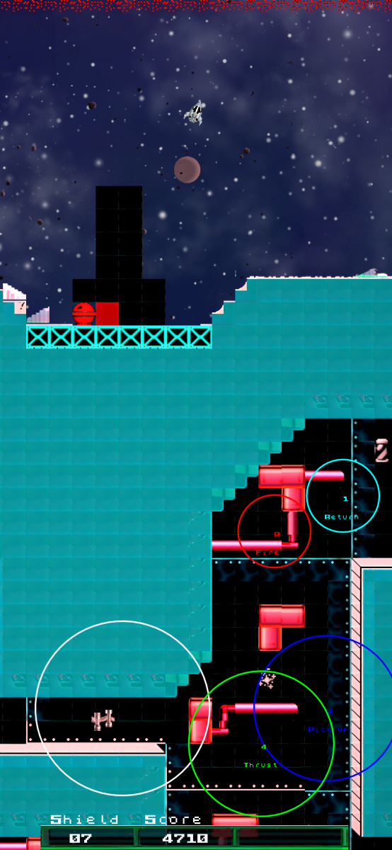 Tip: The "Thrust" and "pick up" buttons are so close that intersect with each other, this is on purpose, in this game you have to press both simultaneosly many times, you can do that with one finger by pressing the interesection.