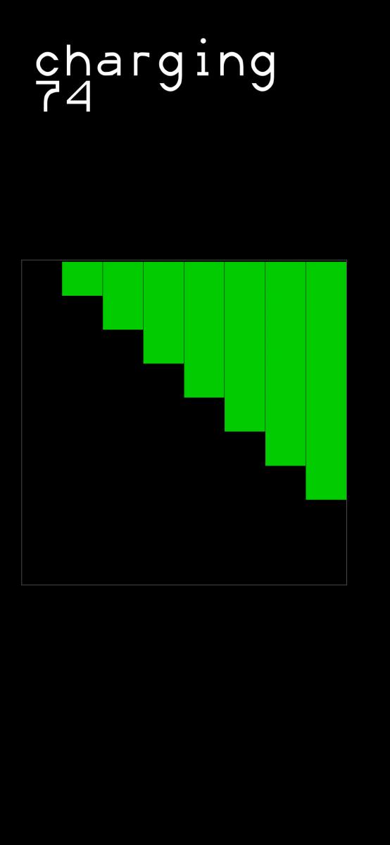 A battery representation that visually indicates the remaining power in a graphical format. The battery is divided into multiple charge rectangles, and their color changes based on the remaining power percentage. The battery representation is based on the powerPercent variable, which ranges from 0 to 100.