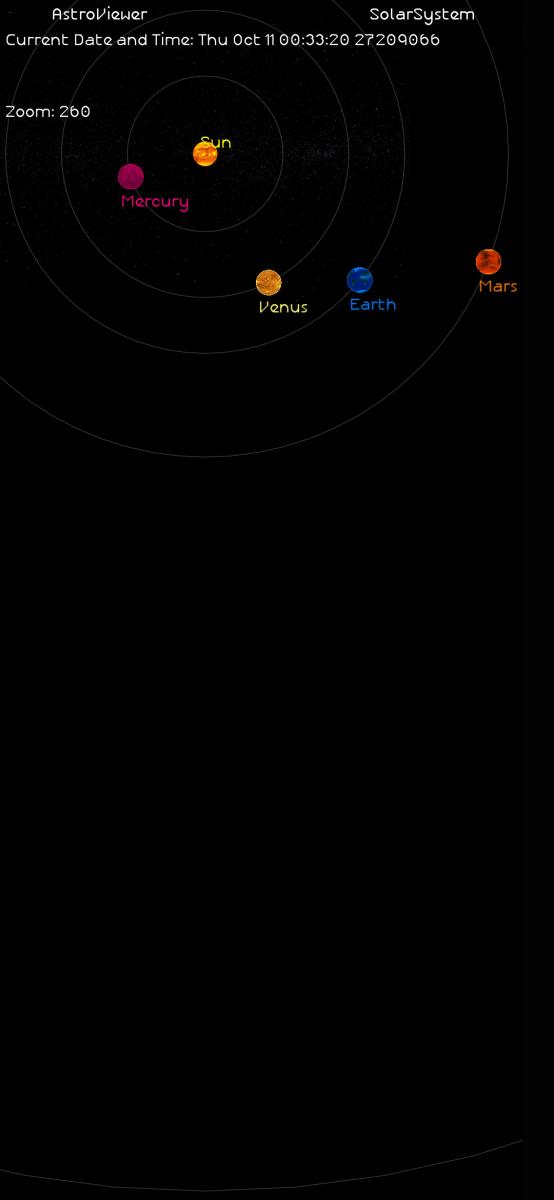 - Orbital movement simulation using real astronomical orbital periods, velocity and time
