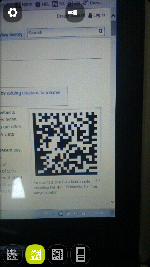 Advanced barcode reader based on QZXing library. Reads QR code, Datamatrix, Aztec codes, and 7 types of 1D barcodes. Support for all popular content types including Wi-Fi configuration previously available only on Android. Flashlight torch for low-light conditions. Selectable search engines.