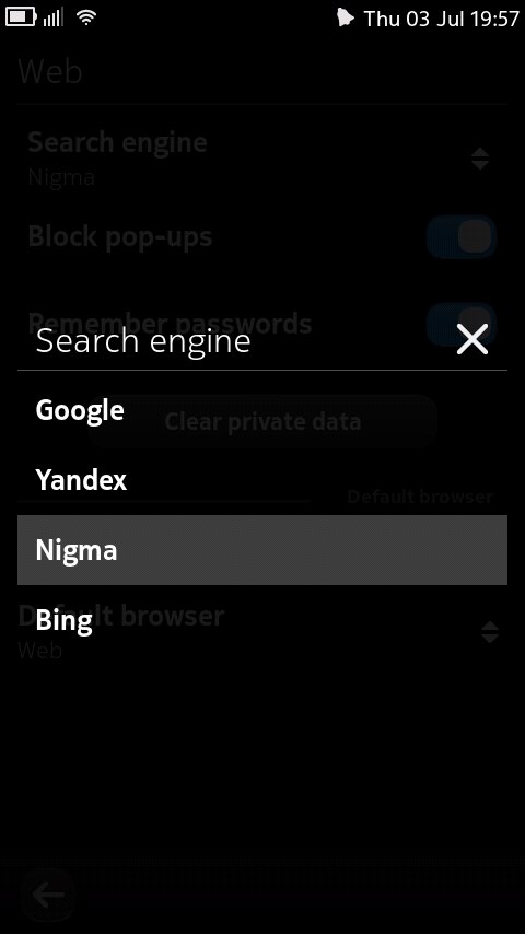 Replace Baidu web search engine with Nigma for Blanco theme. Refresh/reboot after install.