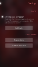 If you want to backup your diary, you can simply copy the database and put it back later: go to “Settings → Database backup” to create a copy in /home/defaultuser/.local/share/harbour-captains-log/harbour-captains-log/backups/. Or you can export a copy as zip archive: go to “Settings → Export → File type → Backup”.