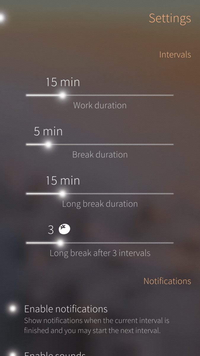 • Added a new timer that reminds you to start the next interval (note: change interval durations if you e.g. find yourself always needing a longer break)
