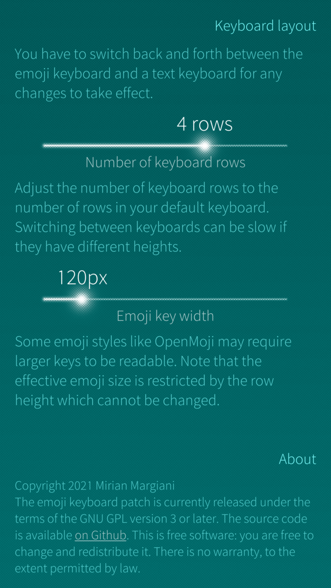 - Added troubleshooting option in emoji keyboard settings: easily restart the keyboard service if no keys are being shown