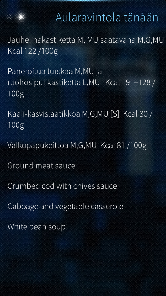 Displays daily and weekly menus of six Uniresta restaurants, which are located in University of Oulu.