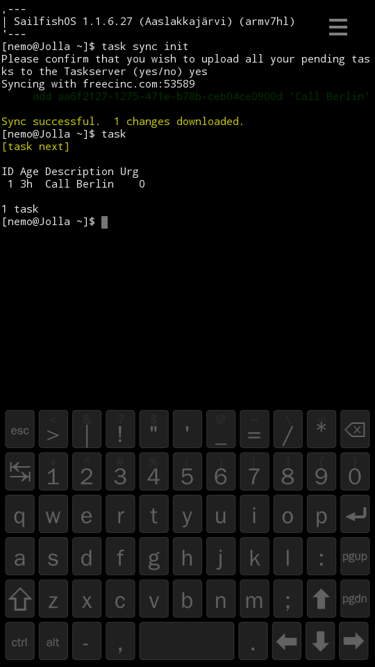 you have to download and extract libtasn1-4.5-1.armv7hl.rpm from here[0] copy it to your phone and precede any task sync call with "LD_PRELOAD=path_to_your_libtasn1.so.6.4.2".