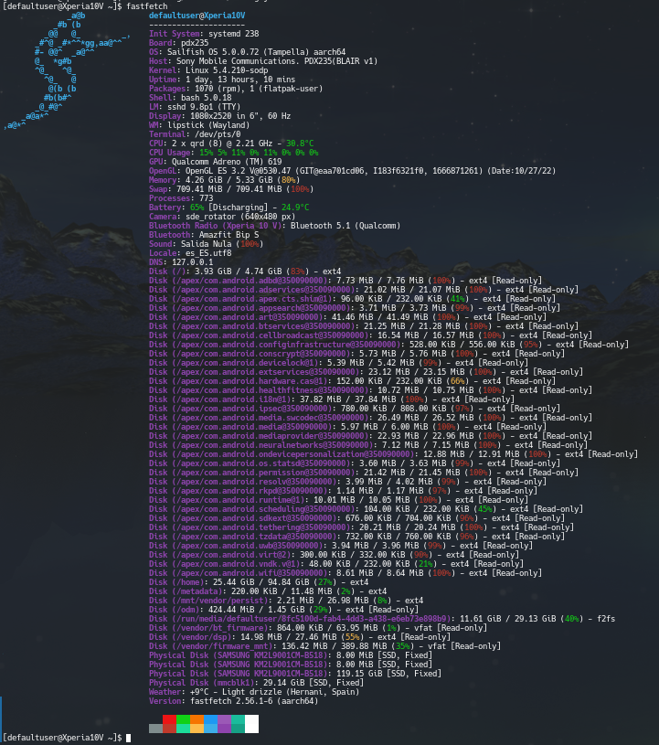 - https://github.com/juanro49/harbour-fastfetch (with SailfishOS fixes and rpm build)
