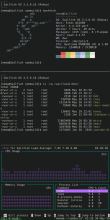 After executing tmux in your terminal, use Ctrl+b by default to enable the prefix mode and then issue any keybinding or option. For instance, to create a new window inside your terminal, press Ctrl+b then c, and Ctrl+b then [0-9] to switch between windows, turning your terminal into a window manager. To split a terminal window horizontally, press Ctrl+b followed by %. Ctrl+b followed by " for vertical splitting. Ctrl+b then hold b and press arrow keys to resize tiles (works in Fingerterm, Havoc and Literm; works only after refreshing with Ctrl+b then Space in Toeterm). If you closed your terminal application without interrupting tmux, you can reattach the running tmux server into a new terminal or from ssh using "tmux attach -t SERVER-NAME" where SERVER-NAME is "0" by default for the first server (but you can create additional servers and rename them).