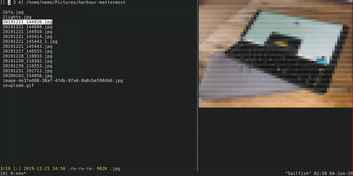 A small command-line application to view images from the terminal written in Rust. It uses lower half blocks (▄ or \u2584) to fit 2 pixels into a single cell by adjusting foreground and background colours accordingly. It can be used in combination with nnn and tmux to preview images directly in your terminal while browsing files in nnn (instructions)