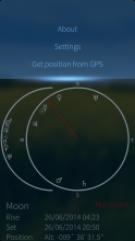 Please remember to select 'Get position from GPS', otherwise you will get the object data for a position in southern Denmark ;). 'Get position from GPS' samples the GPS position until it has your position with sufficient accuracy, and stores the position for future use. While the position is sampled, an GPS icon are shown in the upper right corner of the screen.