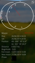 Currently AstroCalc can show the position of the Sun, Moon and planets graphically, show set and rise time, magnitude and distance from Earth, and date for next new and full moon.