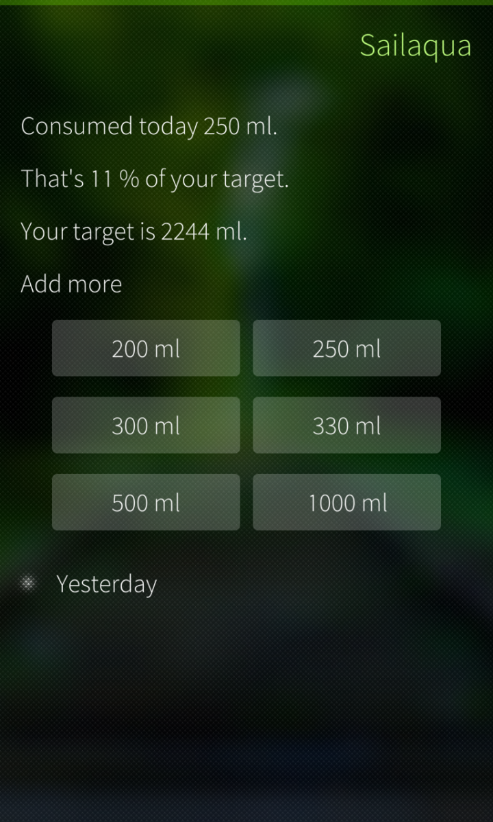 Sailaqua helps you drink water properly and stay hydrated. After add your weight, app calculate how much water you should drink per day.