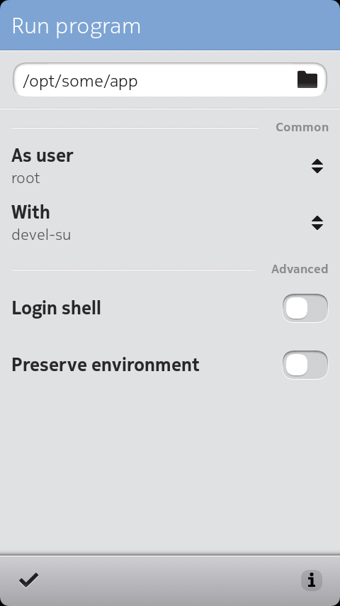 HMTsu (pronounced 'harmattan-su') is a gksu-like tool for N9 smartphone, frontend to devel-su, sudo and ariadne. It provides graphical password prompt and GUI to launch apps with root priveleges without the need to open terminal and run mentioned tools directly.