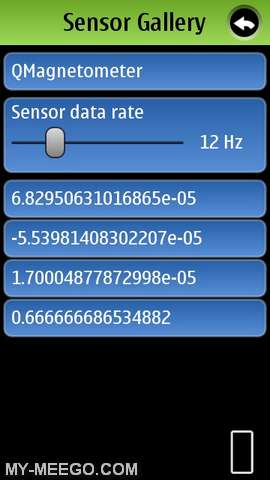 This is my copy of Sensor Gallery by Tomi Paananen, please refer to http://my-meego.com/software/applications.php?fldAuto=84&faq=6 for more details.
