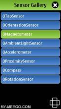 Sensor Gallery is an utility application meant for developers to explore the sensors and their readings provided by Qt Mobility sensor APIs. It dynamically generates a list of sensors supported by Qt Mobility sensors API. The application allows user to select a sensor from the list to view the readings received from that particular sensor in form of raw values. The values are also retrieved dynamically i.e. the application just displays whatever is received via the Qt Mobility API.