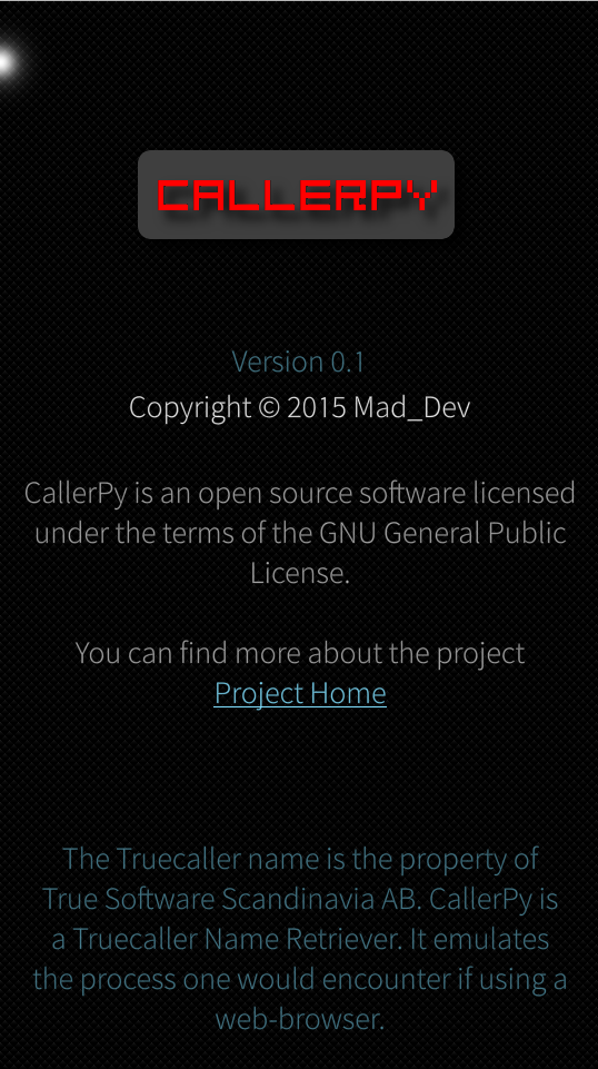 This Sailfish app is nothing more than a client, all the work is done server-side at callerpy.com. An ID has been hardcoded in the source code of this app.