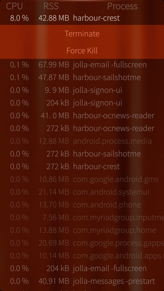A very handy app to have on your Jolla. I've found a use for this on more than one occasion!, especially as 'The Other Half' just will not install, so a reboot was the only way for me, until I tried Crest.