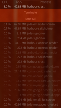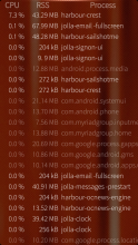 Top like application. Show applications/processes on your cell phone sorted either by CPU or memory usage. You can also terminate/kill selected process. Cover page shows average load.