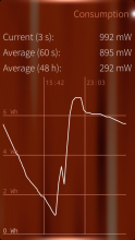 Third number is a little bit more sofisticated. Application asks system timelly how much energy is left in battery. And it computes how much energy disappeared since the last measurements. It counts only consumption - not charging. So you will get average even over night when device sleeps and such.
