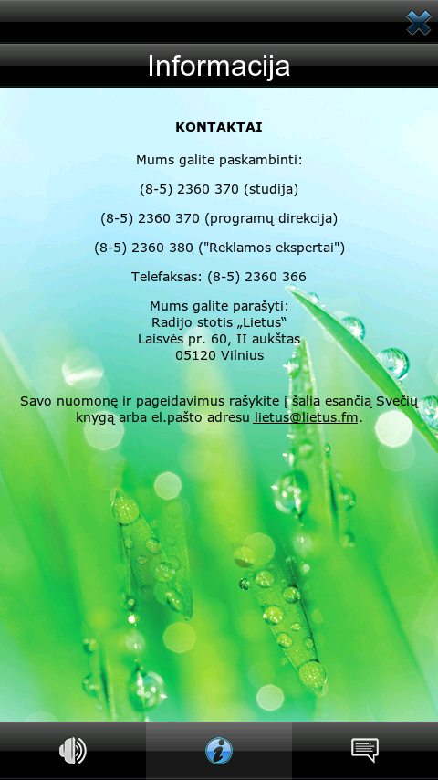 Radio LIETUS started broadcasting on 15th of July 1999. Radio program format is Lithuanian pop music with some foreign music cuts. Radio LIETUS usually stays at the leading positions of Lithuanian radio market.