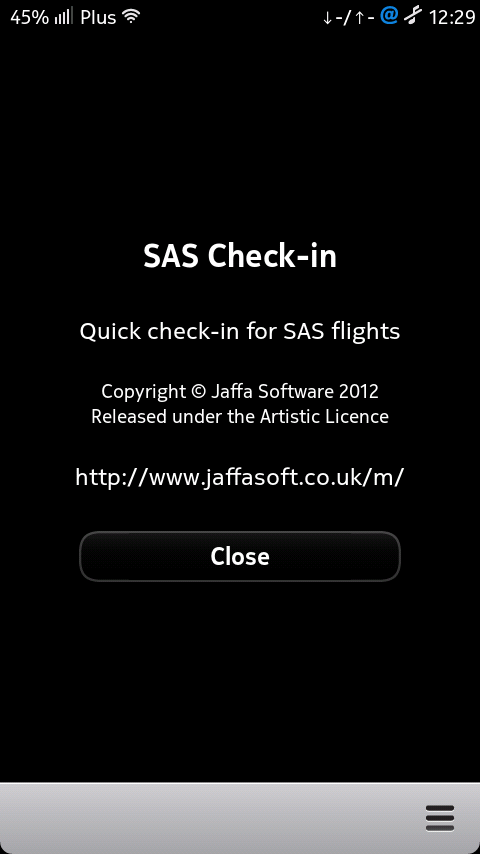"SAS" is a trademark of Scandinavian Airlines System Denmark-Sweden-Norway. This application is an unofficial wrapper for their mobile website, to automate the login process.