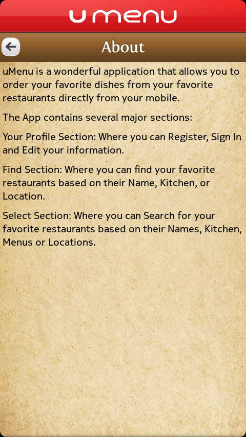 uMenu is a wonderful application that allows you to order your favorite dishes from your favorite restaurants directly from your mobile.