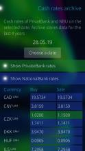 Application show actual exchange rates from Ukrainian PrivatBank. Application uses public data sources. Also you can use archive to get exchange rates from PB and National Bank of Ukraine by concrete date.