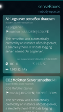 • browsing an account's senseBoxes with current sensor measurements