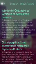 Jednoduchá aplikace na čtení zpráv ze zpravodajských serverů Echo24.cz a Roklen24.cz, používající RSS kanály a integrovaný webový prohlížeč. Nejde o oficiálního klienta, ani tento software není jakkoli autorizován daným serverem.