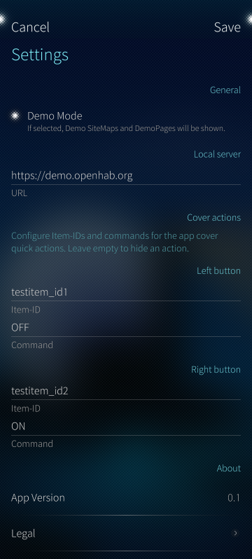 * Tue Mar 17 2026 Dominik Heidinger <dominikh@atomicmail.io> 0.1-1 - initial creation of the openHAB client app - added widgets/element types: Frame, Text, Group, Switch, Switches with Button-Mappings, Selections, Slider, Rollershutter - added customizable CoverActions via settings