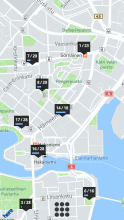 Locations and real-time occupancy of Helsinki city bike stations.