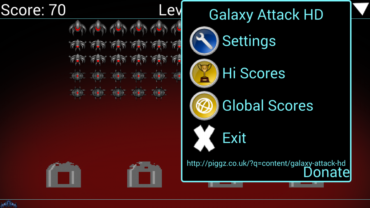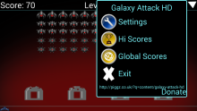 Exiting from the game seems to close the UI only while a background process (galaxy-attack-hd) is left running. After killing it, one can start the game again...