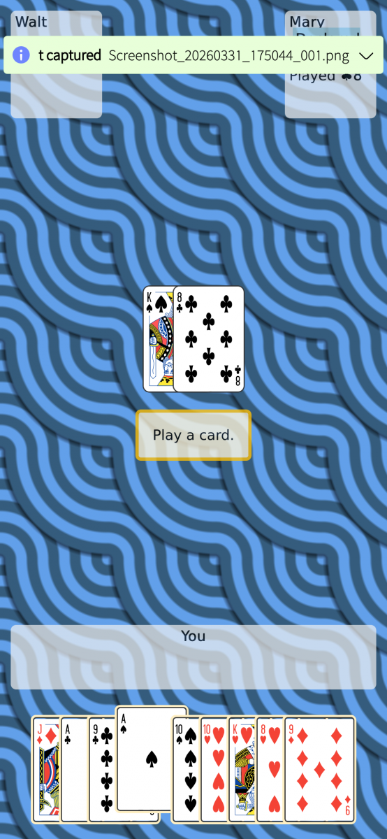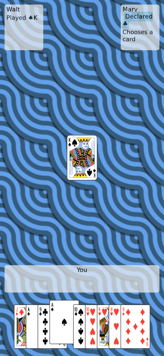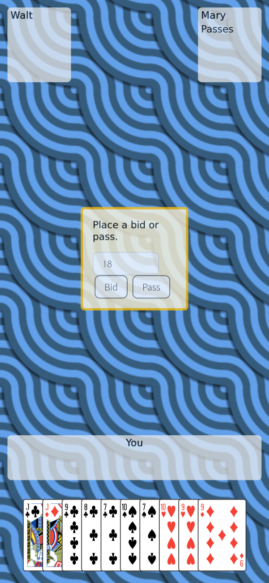 Sailskaat is a simple webview rendering of a 3 player (2 bots and you) skat game.