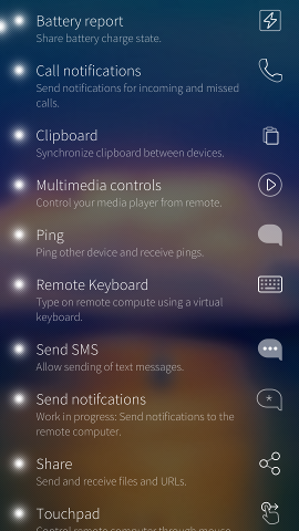 • Direct use of KDE Connect desktop client as backend instead of own fork